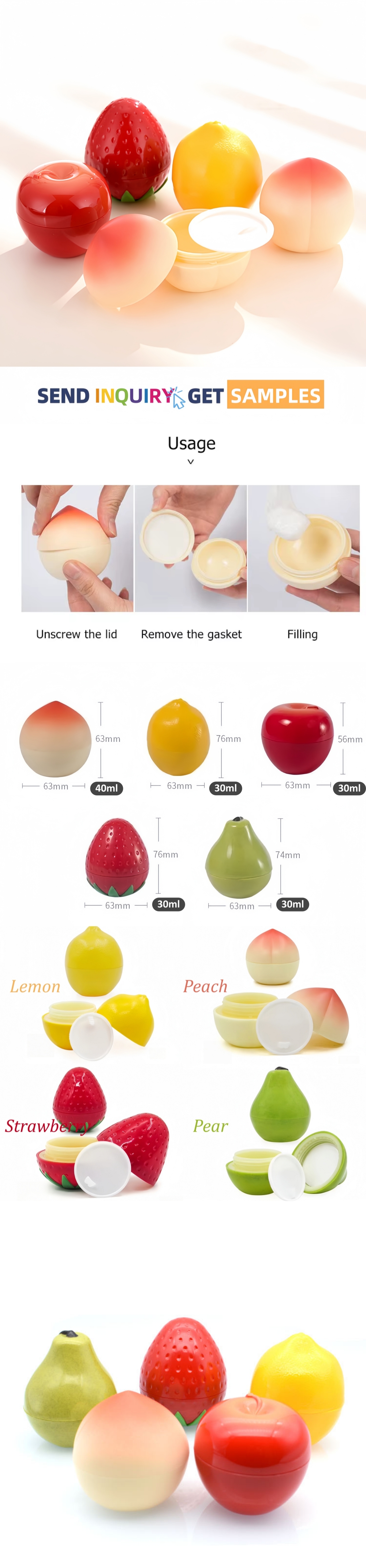 • Wholesale Refillable Custom 30g Cute Fruit Apple Shape Plastic Empty Cosmetic Jar Body Butter Containers Packaging for Baby Skincare
