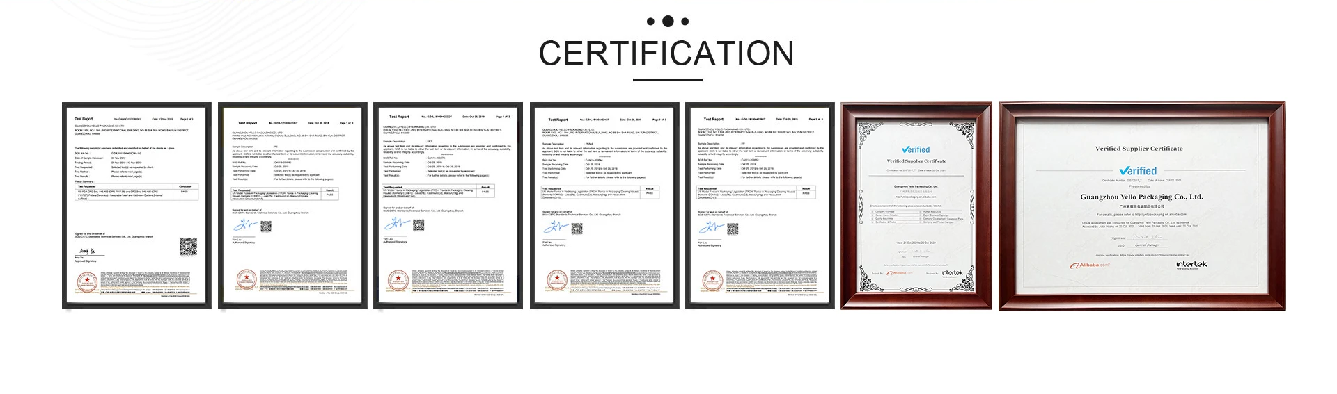 Above certifiates are TPCH for raw material: PE, PP, PET, PMMA, Glass.
