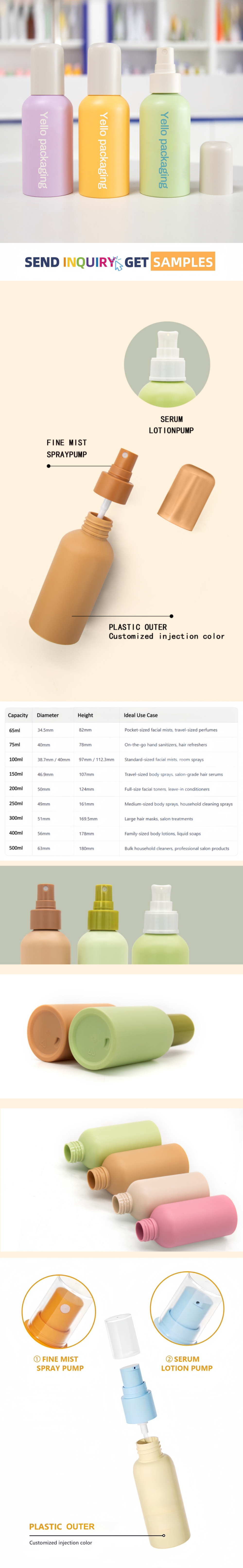 The color of the bottle, spray pump, caps can be customized according to your requirements.