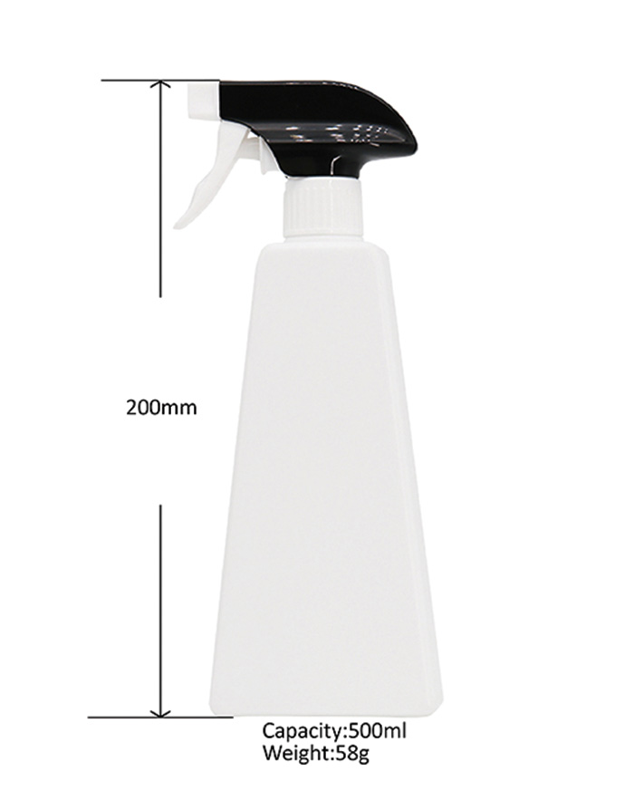 HDPE plastic bottle with black trigger spray pump, very fine mist sprayer for garden cleaning.
